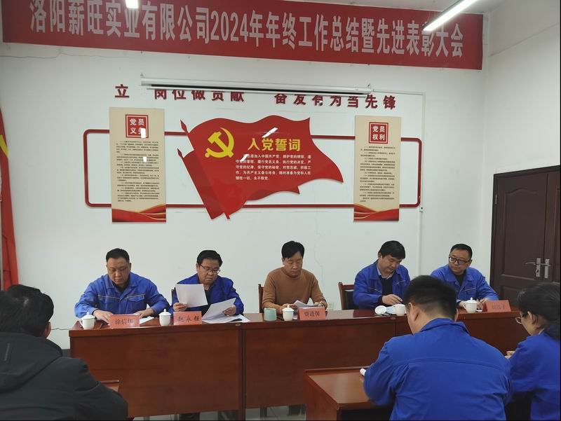 2025年1月22日薪旺實業有限公司召開2024年度總結表彰大會。參加會議的有公司董事長、總經理賈進保,常務副總經理趙永強、副總經理賈景獻,包裝公司總經理徐信偉,炭材公司總經理胡偉子以及中層干部、班長及先進。